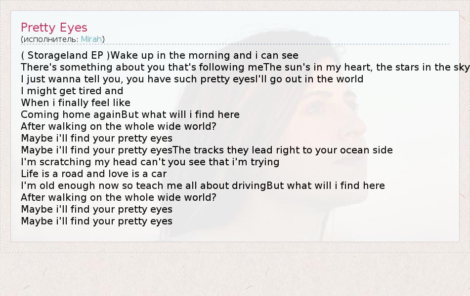 А как ты думаешь, о чем песня "Pretty Eyes" ?