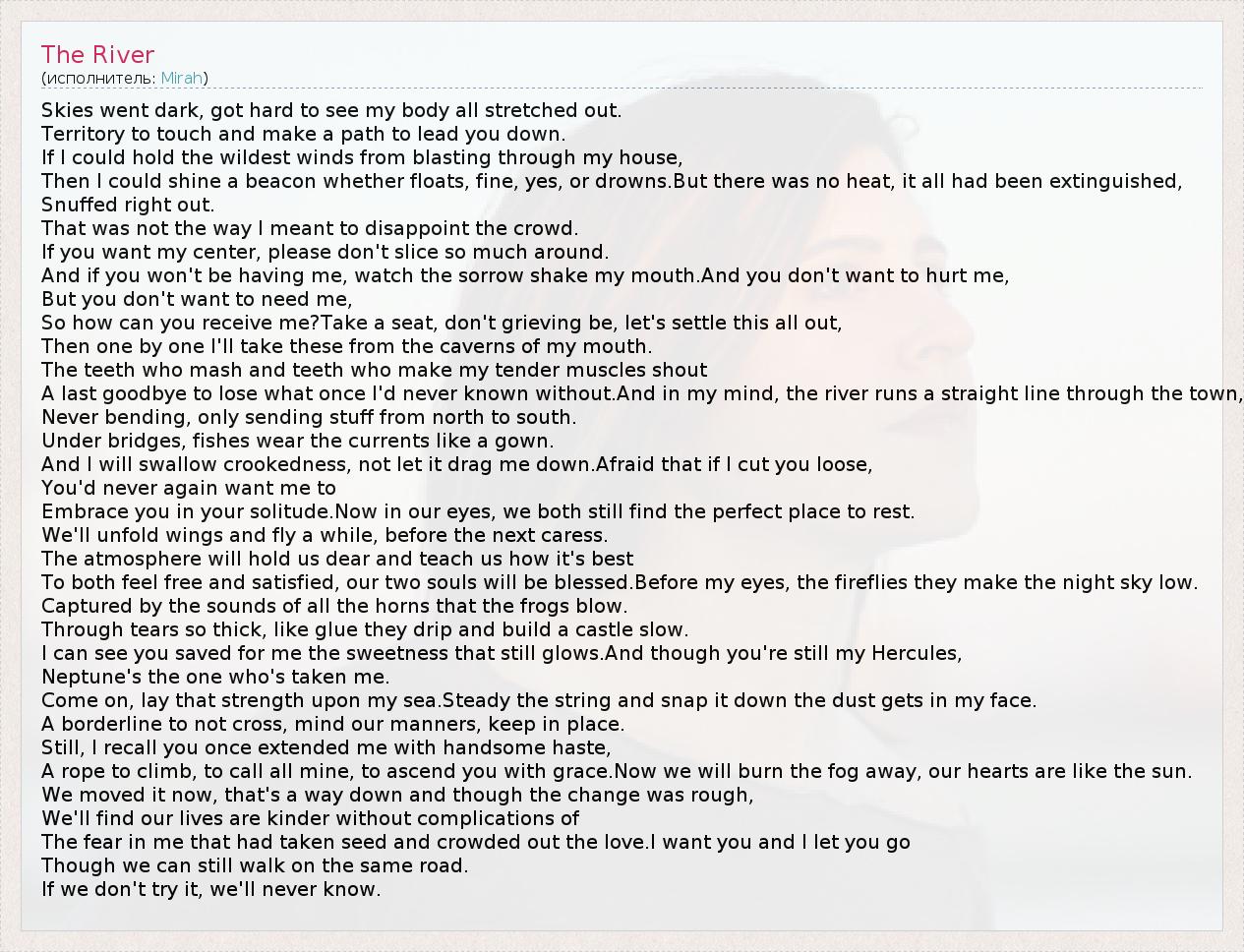Embrace you in your solitude.Now in our eyes, we both still find the perfect place to rest.