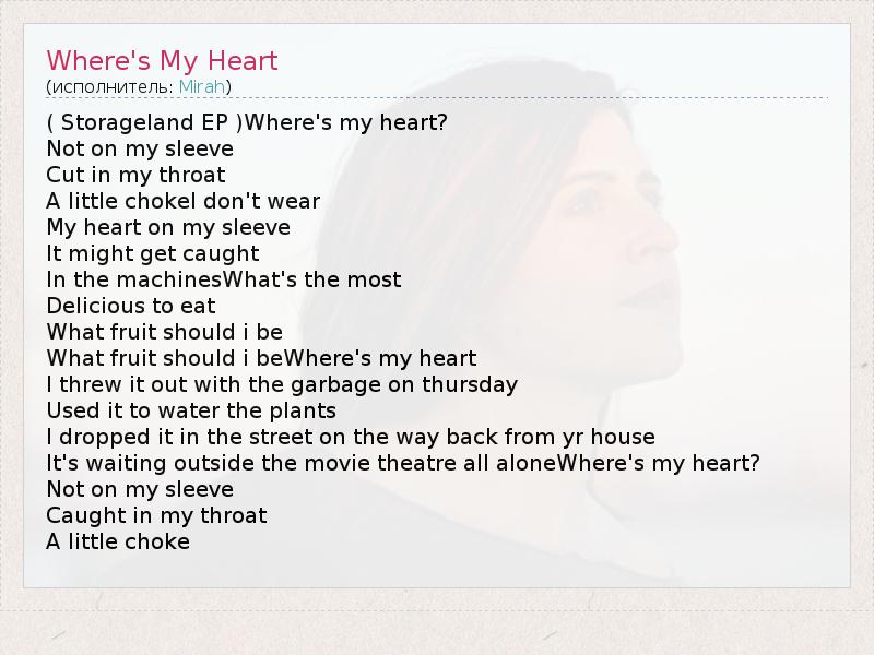 А как ты думаешь, о чем песня "Where's My Heart" ?