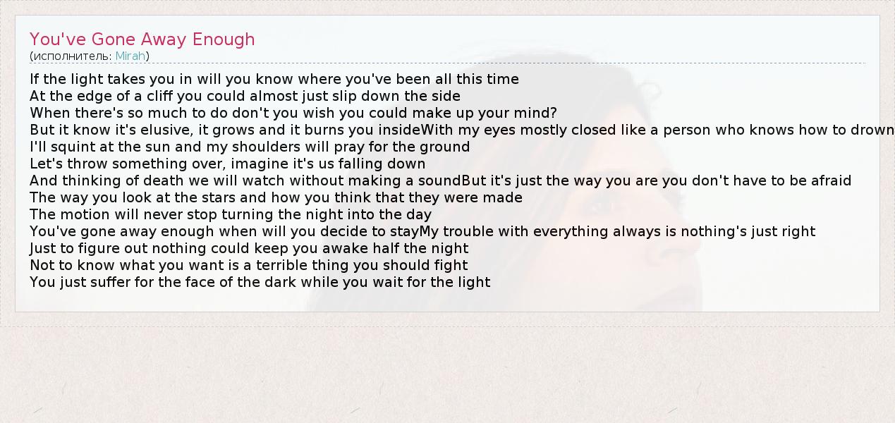 А как ты думаешь, о чем песня "You've Gone Away Enough" ?