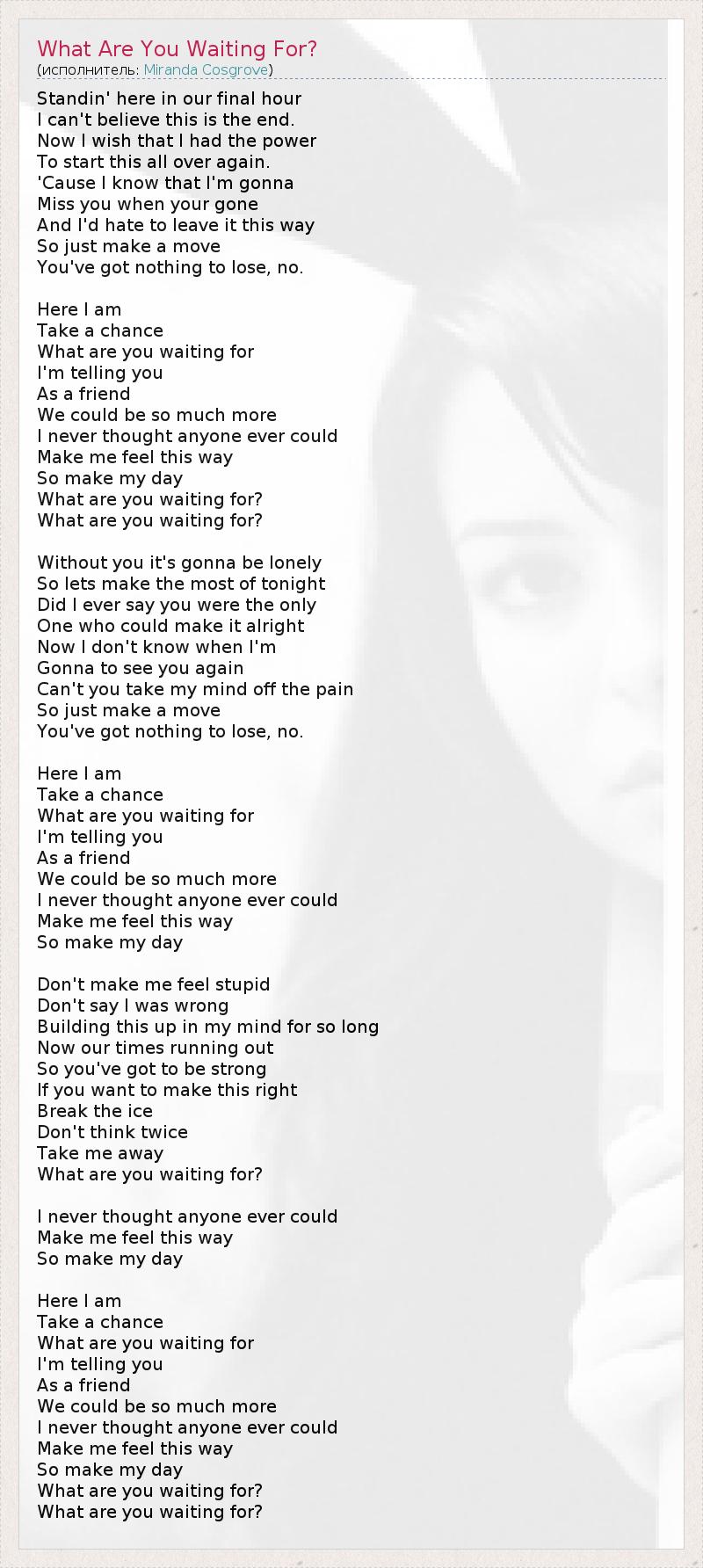 А как ты думаешь, о чем песня "What Are You Waiting For?" ?