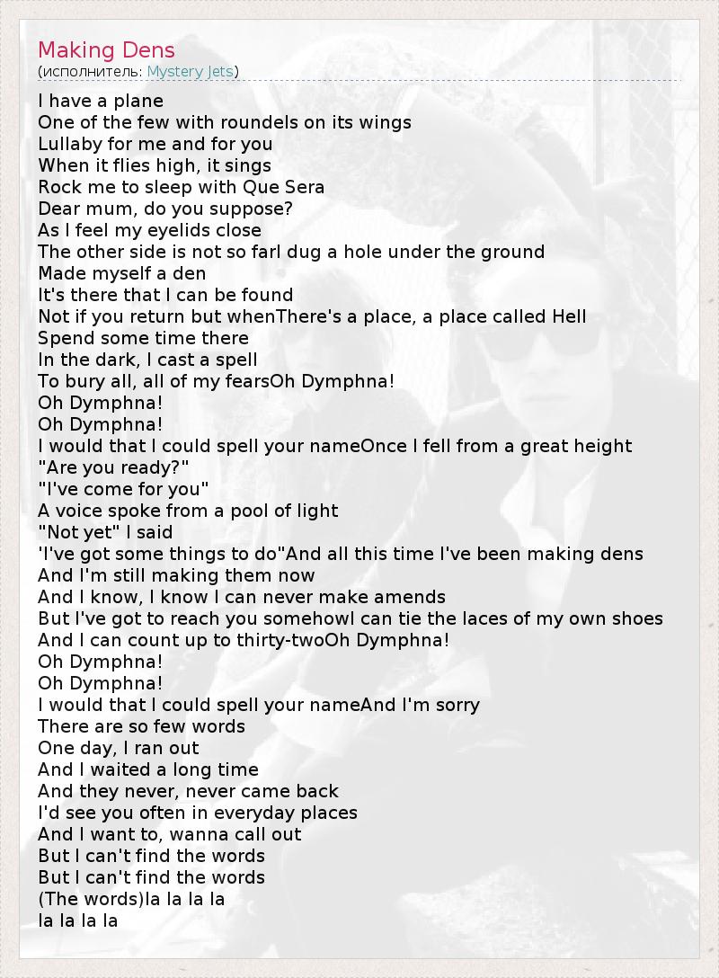 А как ты думаешь, о чем песня "Making Dens" ?