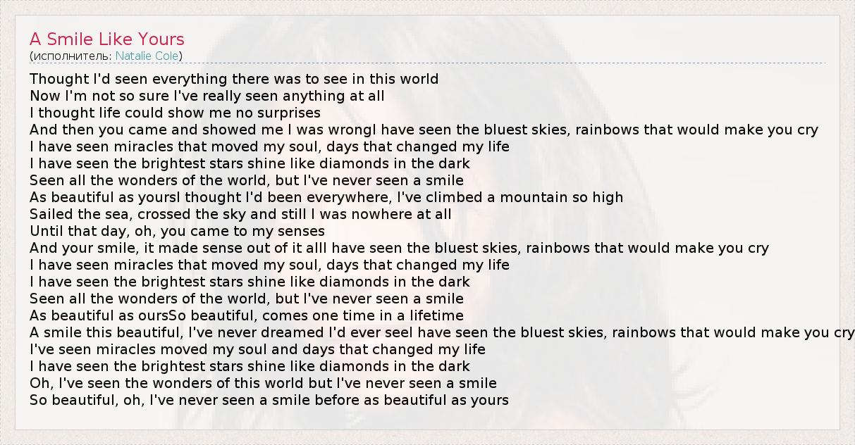 А как ты думаешь, о чем песня "A Smile Like Yours" ?