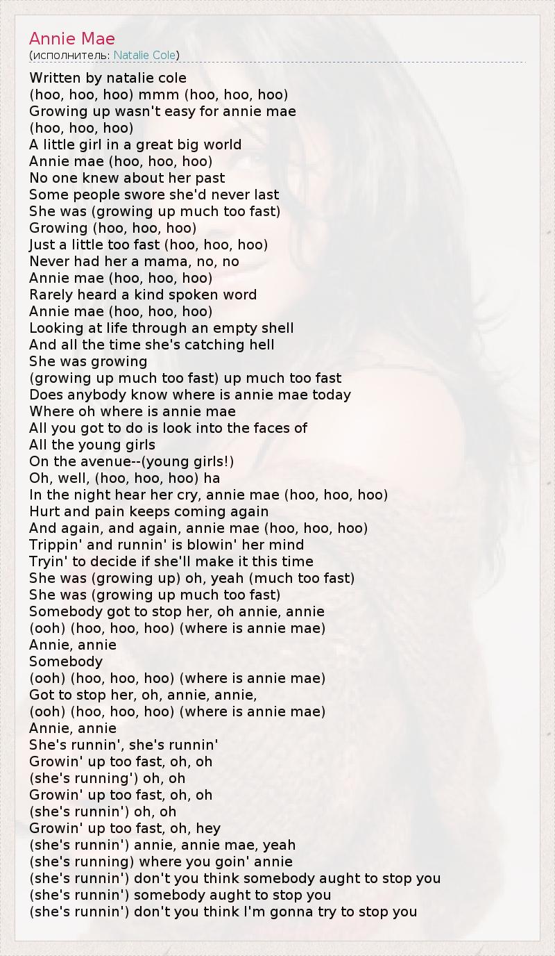 (ooh) (hoo, hoo, hoo) (where is annie mae)