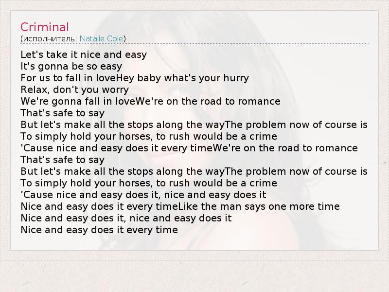Это интересно:Несмотря на то, что Натали Коул является дочерью знаменитого певца Nat ''King'' Cole, она начала заниматься пением, только после поступления в Университет Штата Массачусетс.Натали начинала свою музыкальную карьеру, с того что писала песни, помимо этого таланта, она была великолепной пианисткой, пела вместе с Chuck Jackson и Marvin Yancy. Их музыка была смесью из различных музыкальных... продолжение