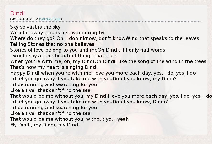 А как ты думаешь, о чем песня "Dindi" ?