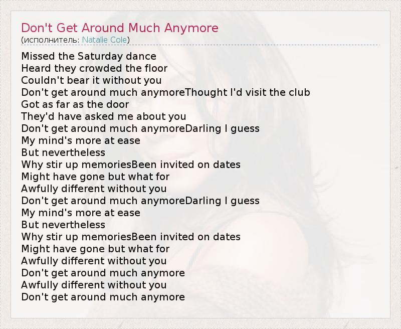 ГлавнаяИсполнителиNatalie ColeDon't Get Around Much Anymore