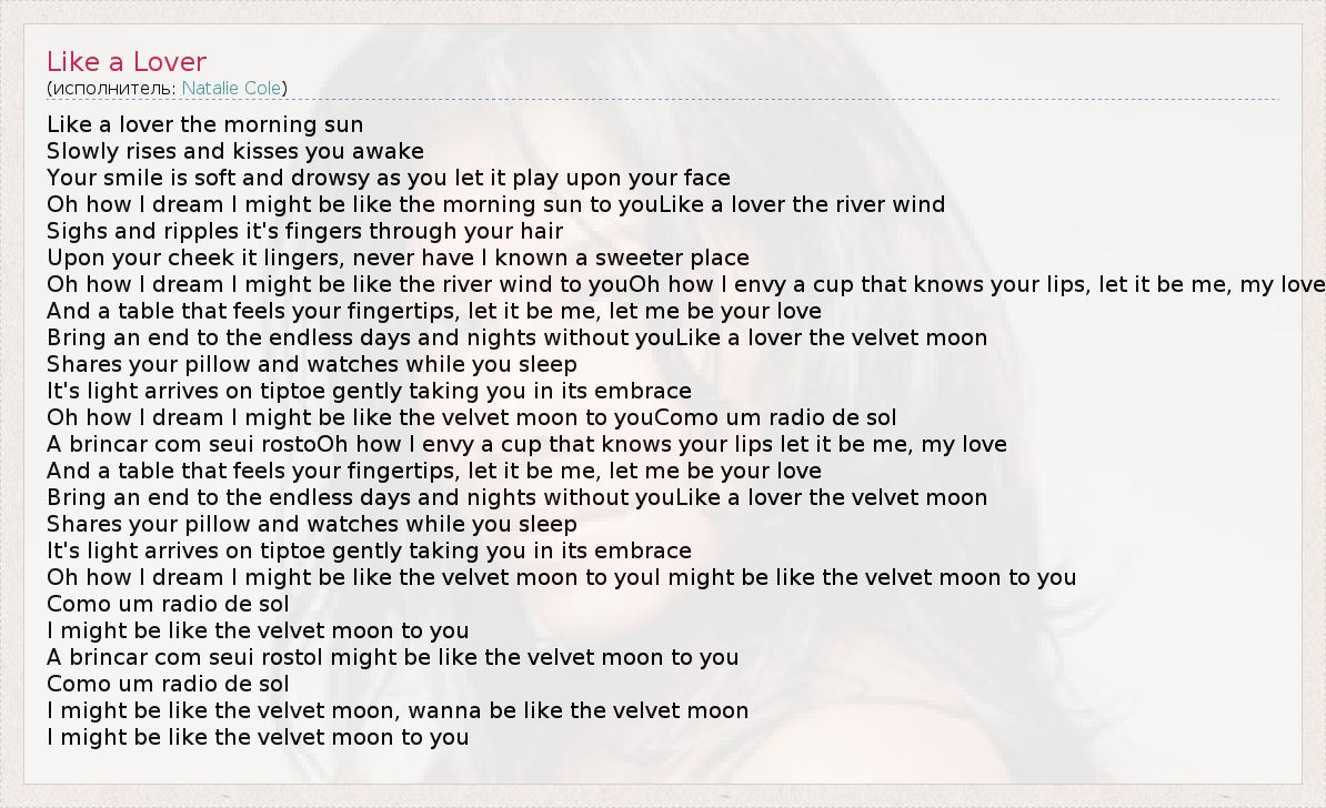 А как ты думаешь, о чем песня "Like a Lover" ?