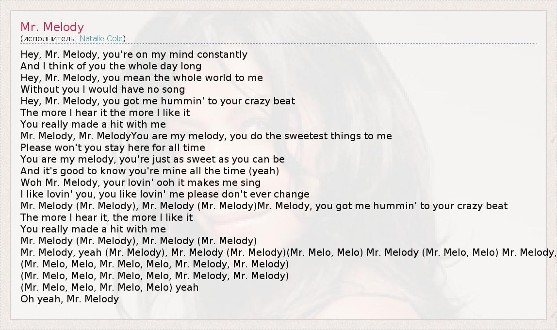 А как ты думаешь, о чем песня "Mr. Melody" ?