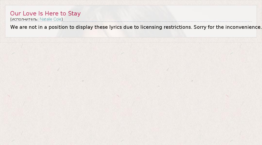 ГлавнаяИсполнителиNatalie ColeOur Love Is Here to Stay
