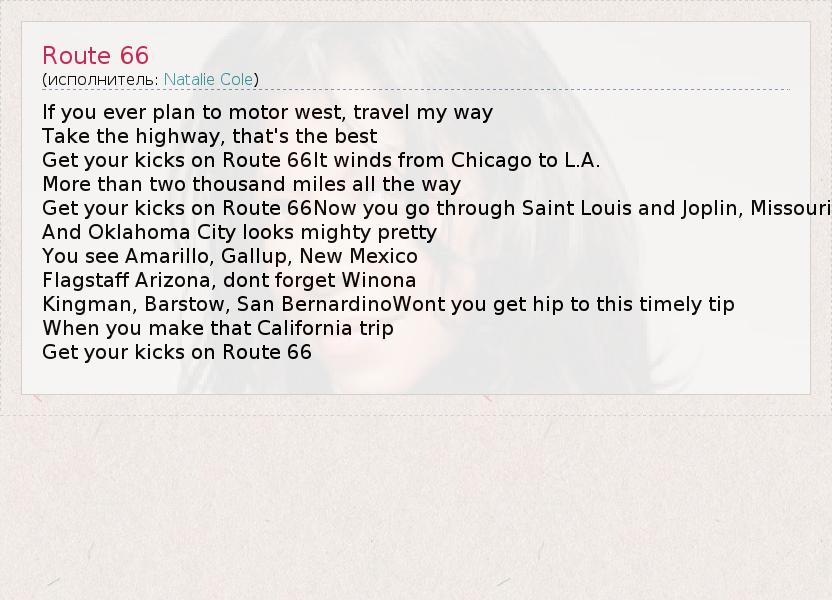 Get your kicks on Route 66Now you go through Saint Louis and Joplin, Missouri