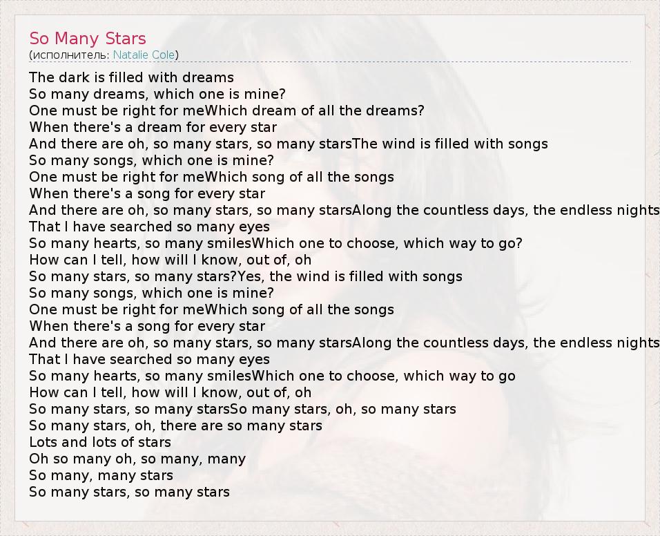 А как ты думаешь, о чем песня "So Many Stars" ?