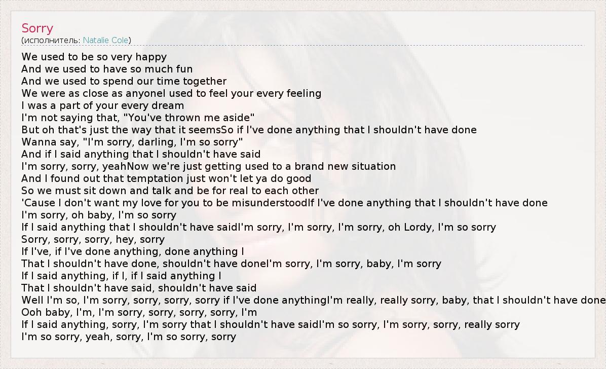 Well I'm so, I'm sorry, sorry, sorry, sorry if I've done anythingI'm really, really sorry, baby, that I shouldn't have done