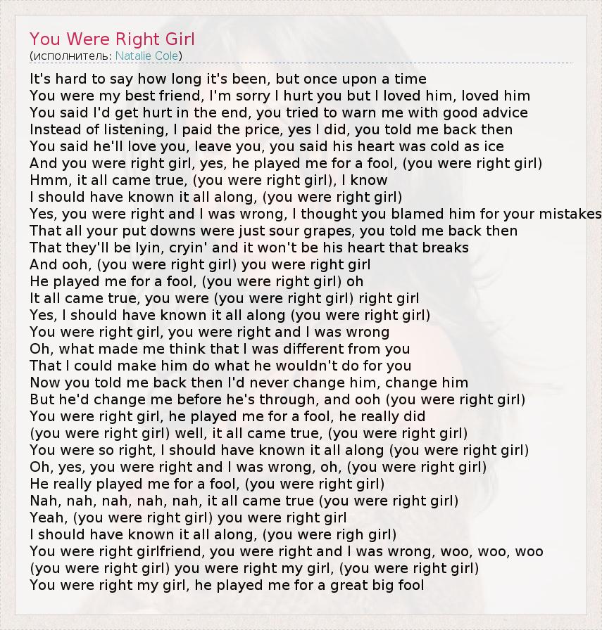 А как ты думаешь, о чем песня "You Were Right Girl" ?
