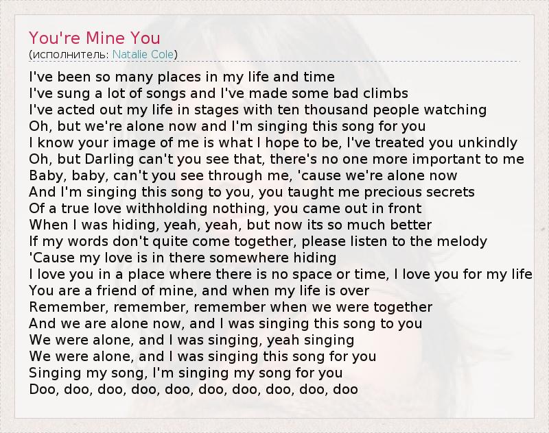 А как ты думаешь, о чем песня "You're Mine You" ?