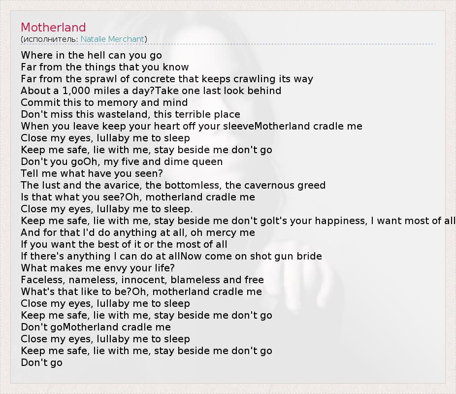 А как ты думаешь, о чем песня "Motherland" ?
