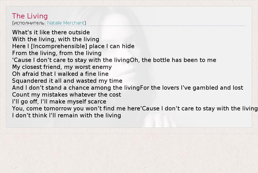 А как ты думаешь, о чем песня "The Living" ?