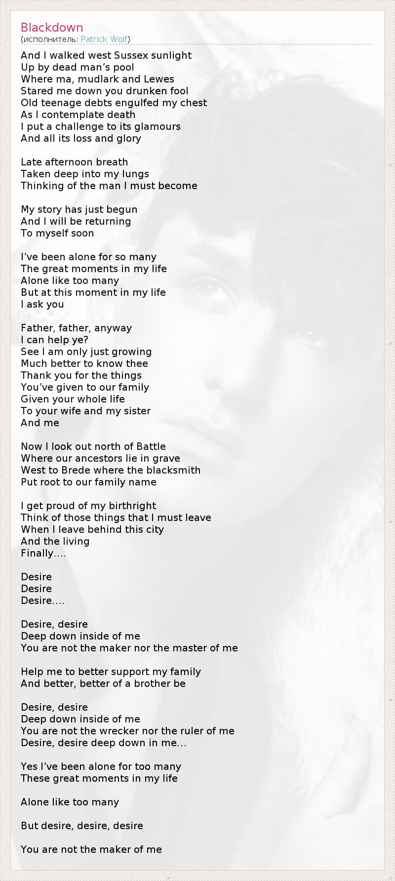 Это интересно:Патрик Вулф (англ. Patrick Wolf, 30 июня 1983, Лондон, Великобритания) — современный британский певец, музыкант и композитор. Настоящее имя Patrick Denis Apps. Играет на большом количестве музыкальных инструментов, в том числе таких как укулеле, фортепиано и альт. Пишет музыку, используя как сэмплы, так и классические музыкальные инструменты. Его стиль варьируется от романтичного фолка до техно-попа.Пи... продолжение