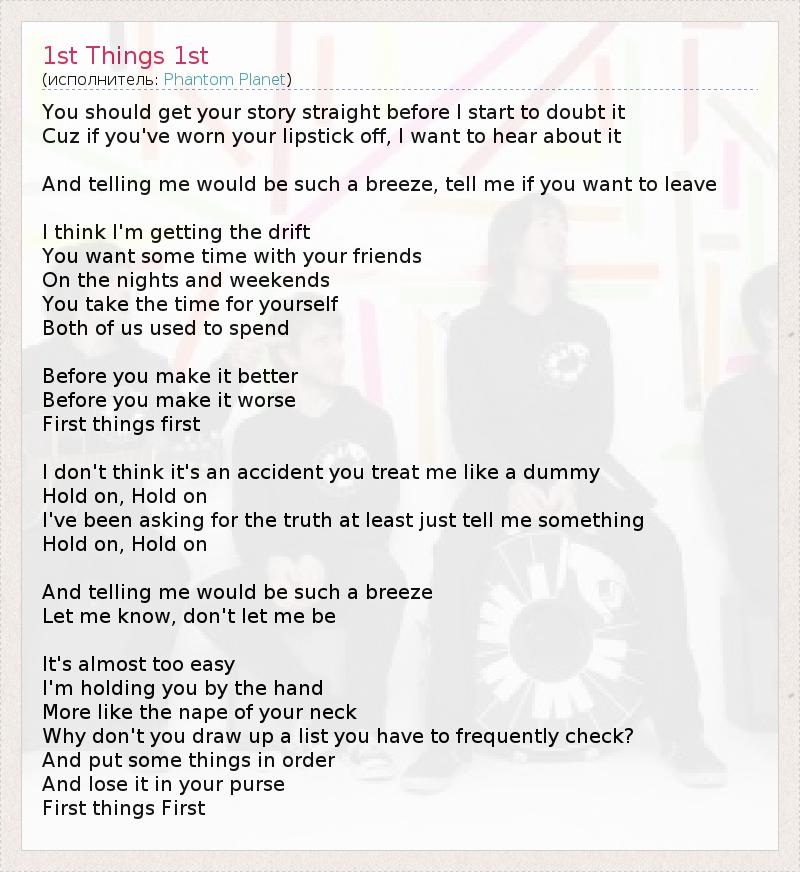 А как ты думаешь, о чем песня "1st Things 1st" ?