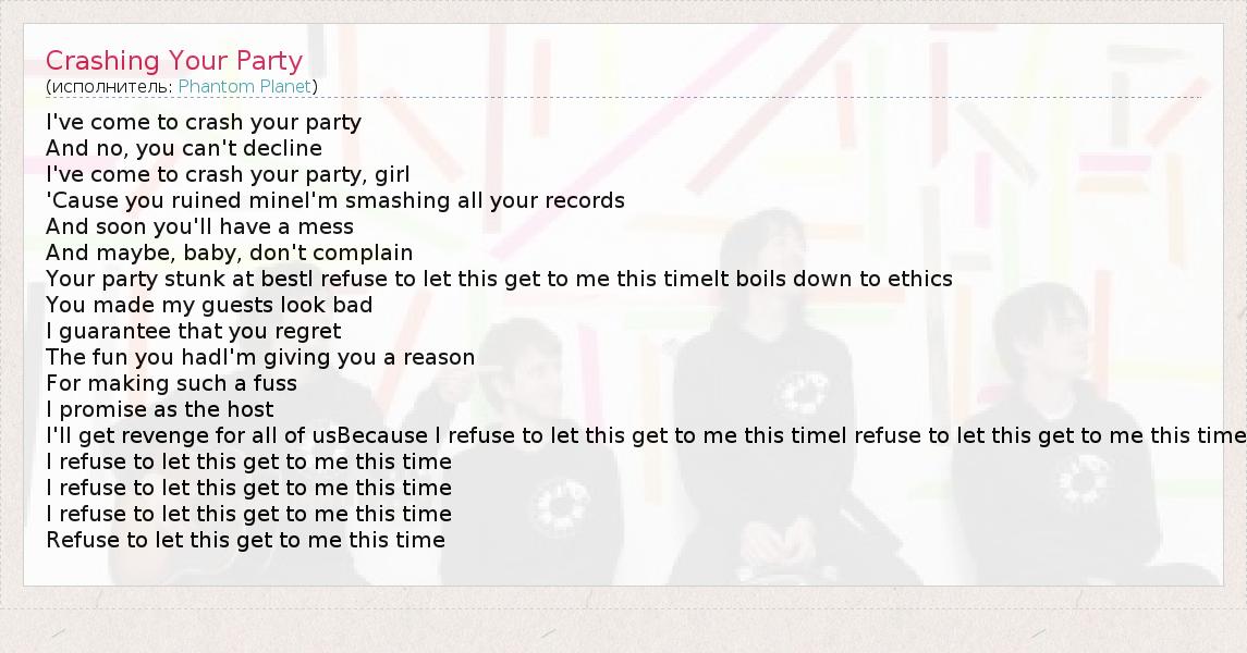 А как ты думаешь, о чем песня "Crashing Your Party" ?