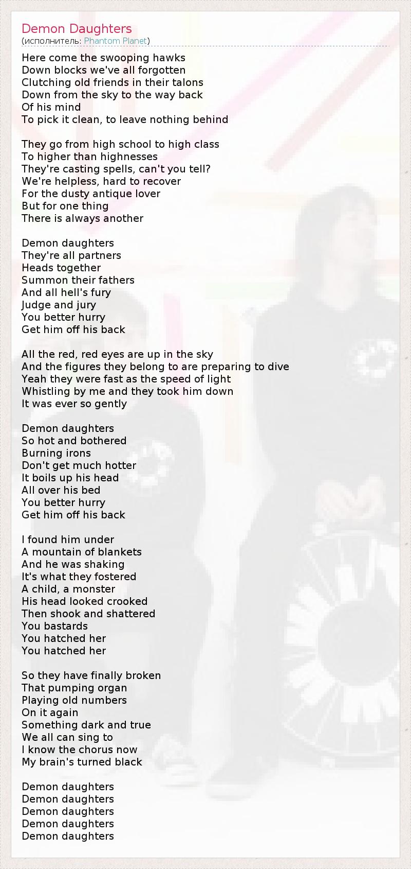 А как ты думаешь, о чем песня "Demon Daughters" ?
