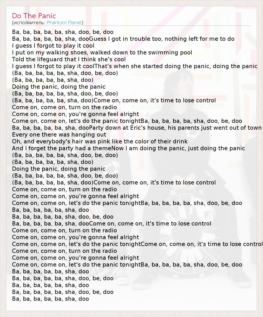 Come on, come on, let's do the panic tonightBa, ba, ba, ba, ba, sha, doo, be, doo