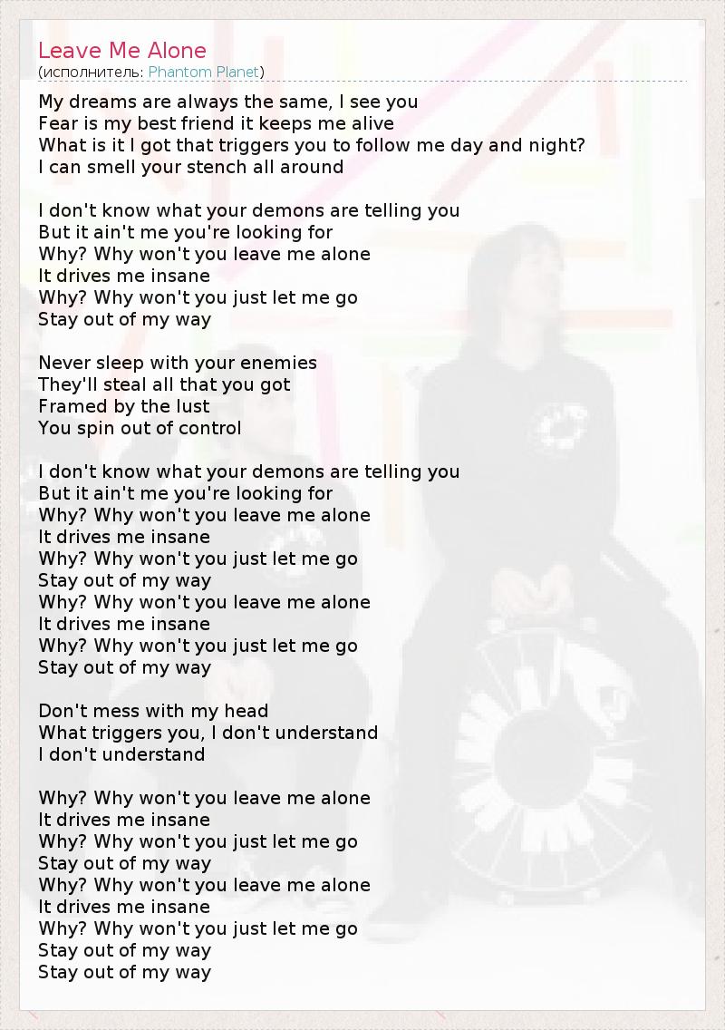 А как ты думаешь, о чем песня "Leave Me Alone" ?