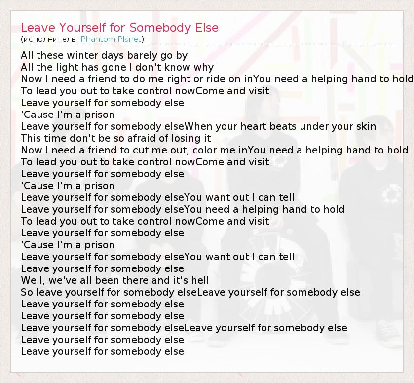 А как ты думаешь, о чем песня "Leave Yourself for Somebody Else" ?