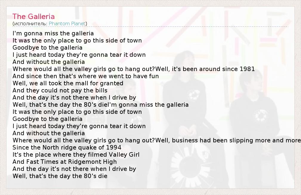 А как ты думаешь, о чем песня "The Galleria" ?