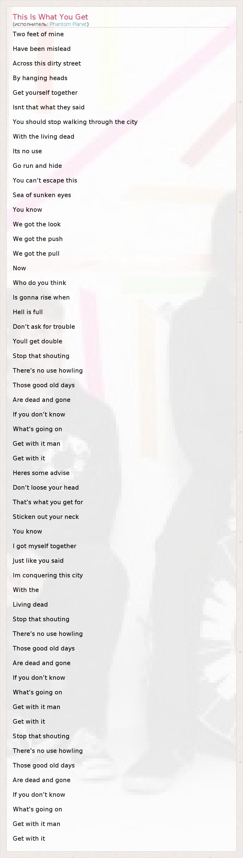 А как ты думаешь, о чем песня "This Is What You Get" ?