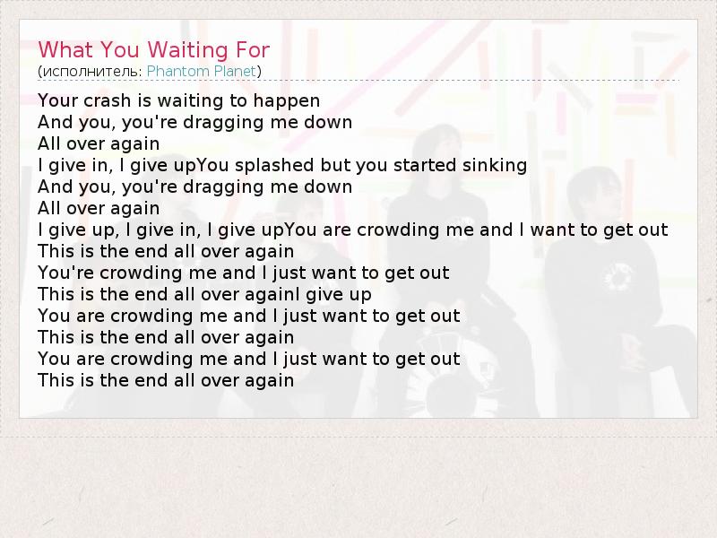 А как ты думаешь, о чем песня "What You Waiting For" ?