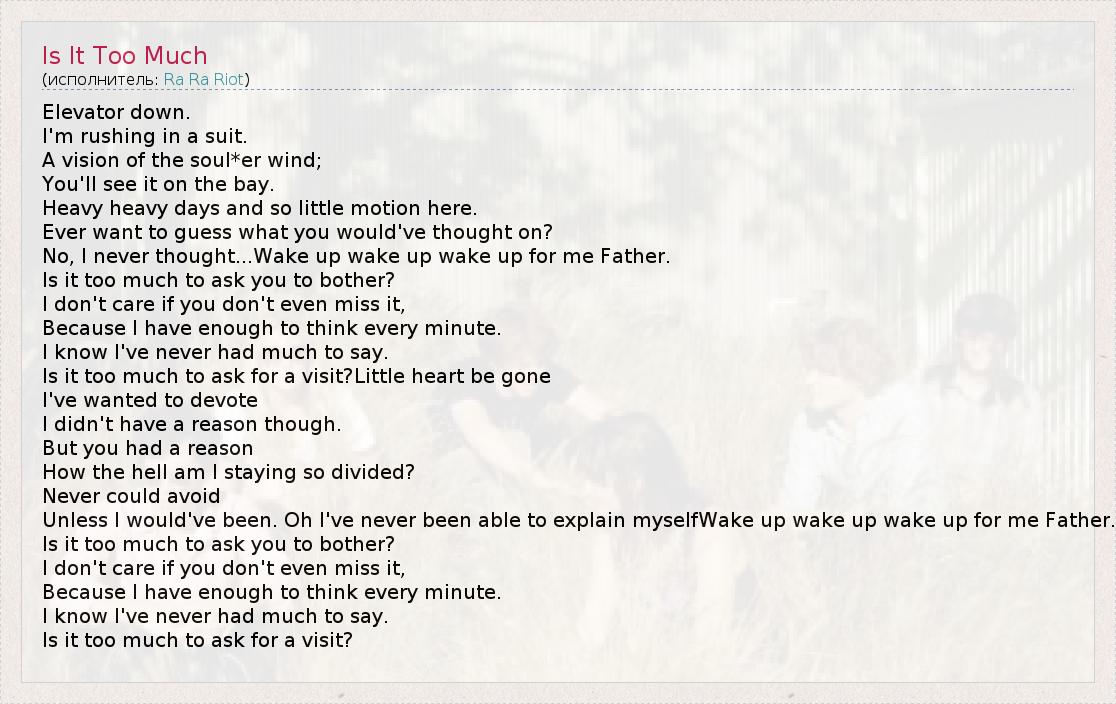 А как ты думаешь, о чем песня "Is It Too Much" ?