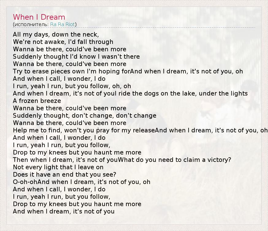 Try to erase pieces own I'm hoping forAnd when I dream, it's not of you, oh