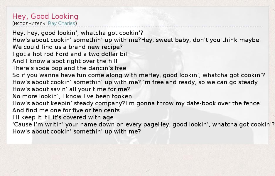 А как ты думаешь, о чем песня "Hey, Good Looking" ?