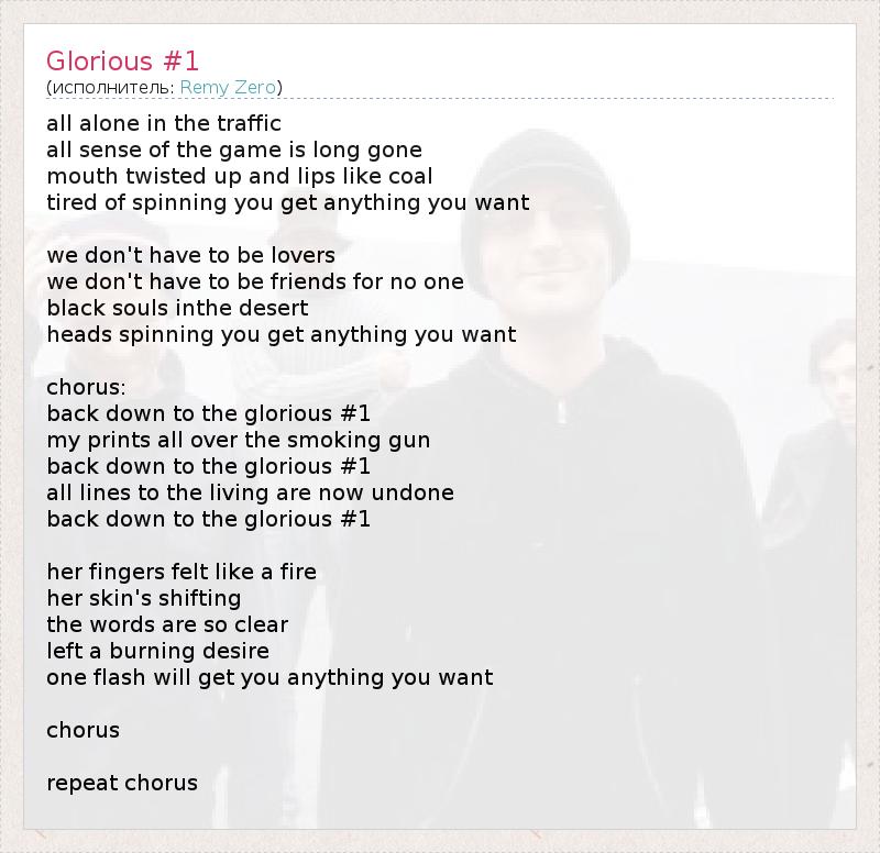 А как ты думаешь, о чем песня "Glorious #1" ?