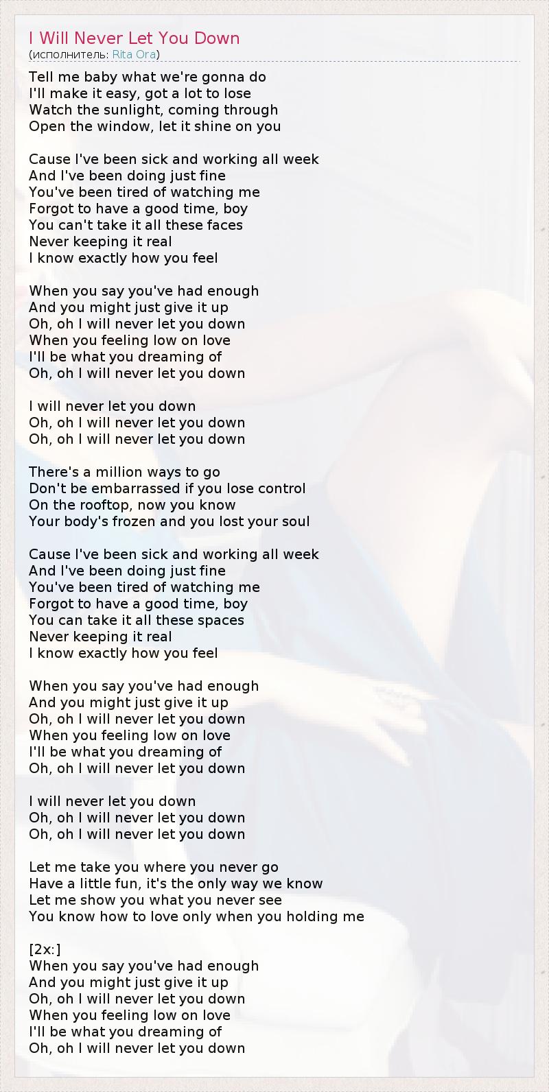 А как ты думаешь, о чем песня "I Will Never Let You Down" ?