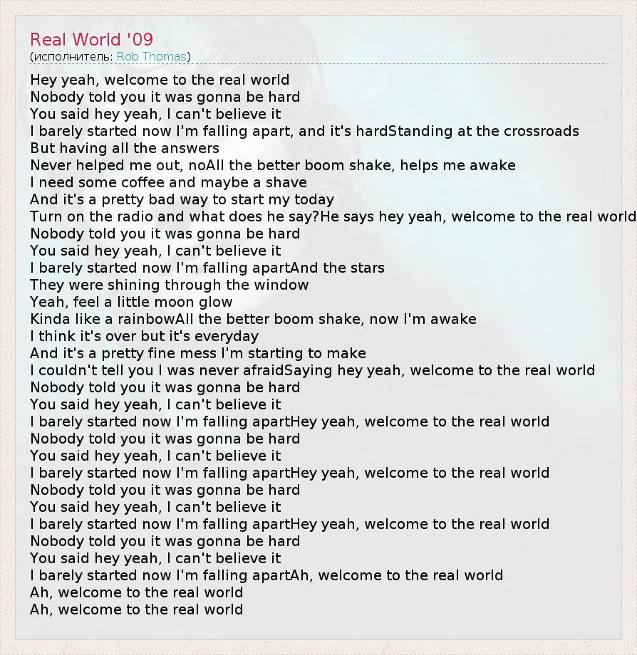 А как ты думаешь, о чем песня "Real World '09" ?