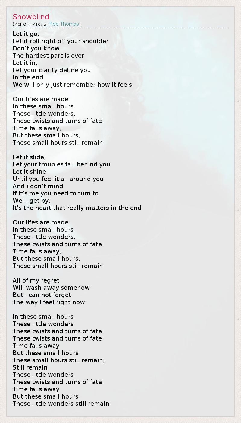 Это интересно:Роб Томас (родился 14 Февраля 1972-го в Германии) американский исполнитель, солист группы Matchbox Twenty.Слава талантливого хитмейкера привела Роба Томаса к сотрудничеству с рядом рок- и поп-звёзд. И если до сих пор ещё оставались люди, которые ничего о нём не знали, то после выхода сингла знаменитого Карлоса Сантаны "Smooth" (1999) Робу рукоплескал весь мир: за эту композицию он, ее автор, получил... продолжение