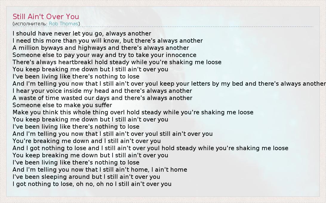 А как ты думаешь, о чем песня "Still Ain't Over You" ?