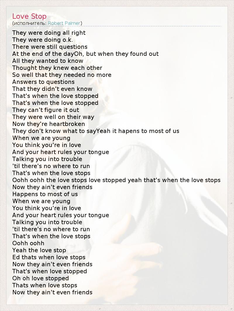 Oohh oohh the love stops love stopped yeah that's when the love stops