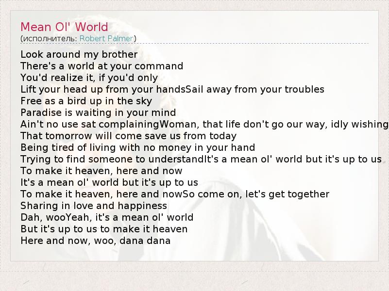 А как ты думаешь, о чем песня "Mean Ol' World" ?
