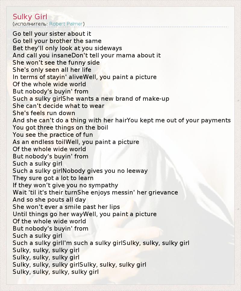 А как ты думаешь, о чем песня "Sulky Girl" ?