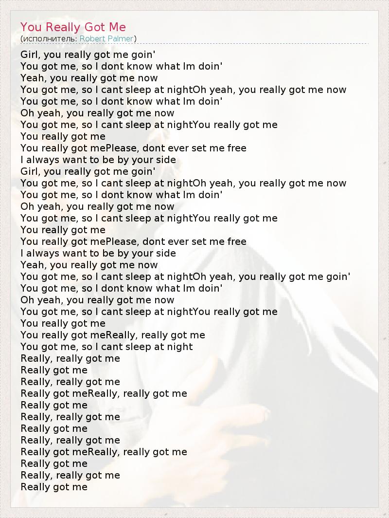 А как ты думаешь, о чем песня "You Really Got Me" ?