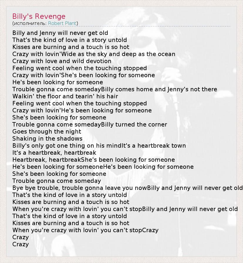 А как ты думаешь, о чем песня "Billy's Revenge" ?