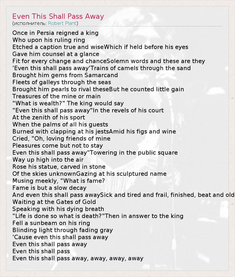А как ты думаешь, о чем песня "Even This Shall Pass Away" ?