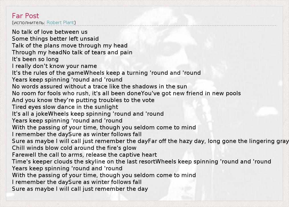 Sure as maybe I will call just remember the dayFar off the hazy day, long gone the lingering gray