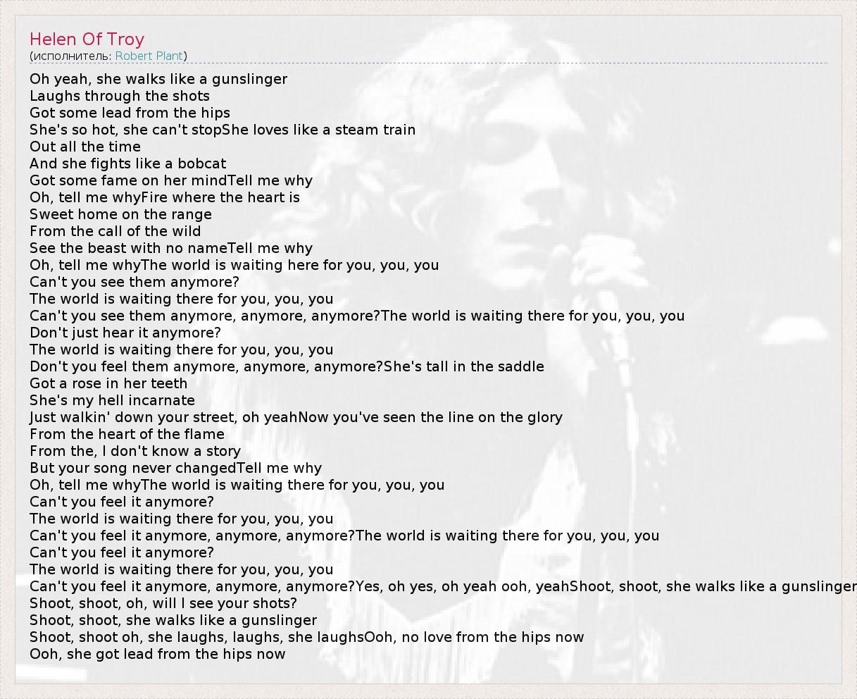 А как ты думаешь, о чем песня "Helen Of Troy" ?