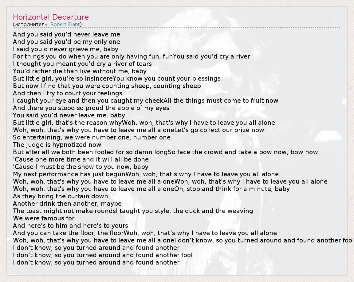 А как ты думаешь, о чем песня "Horizontal Departure" ?