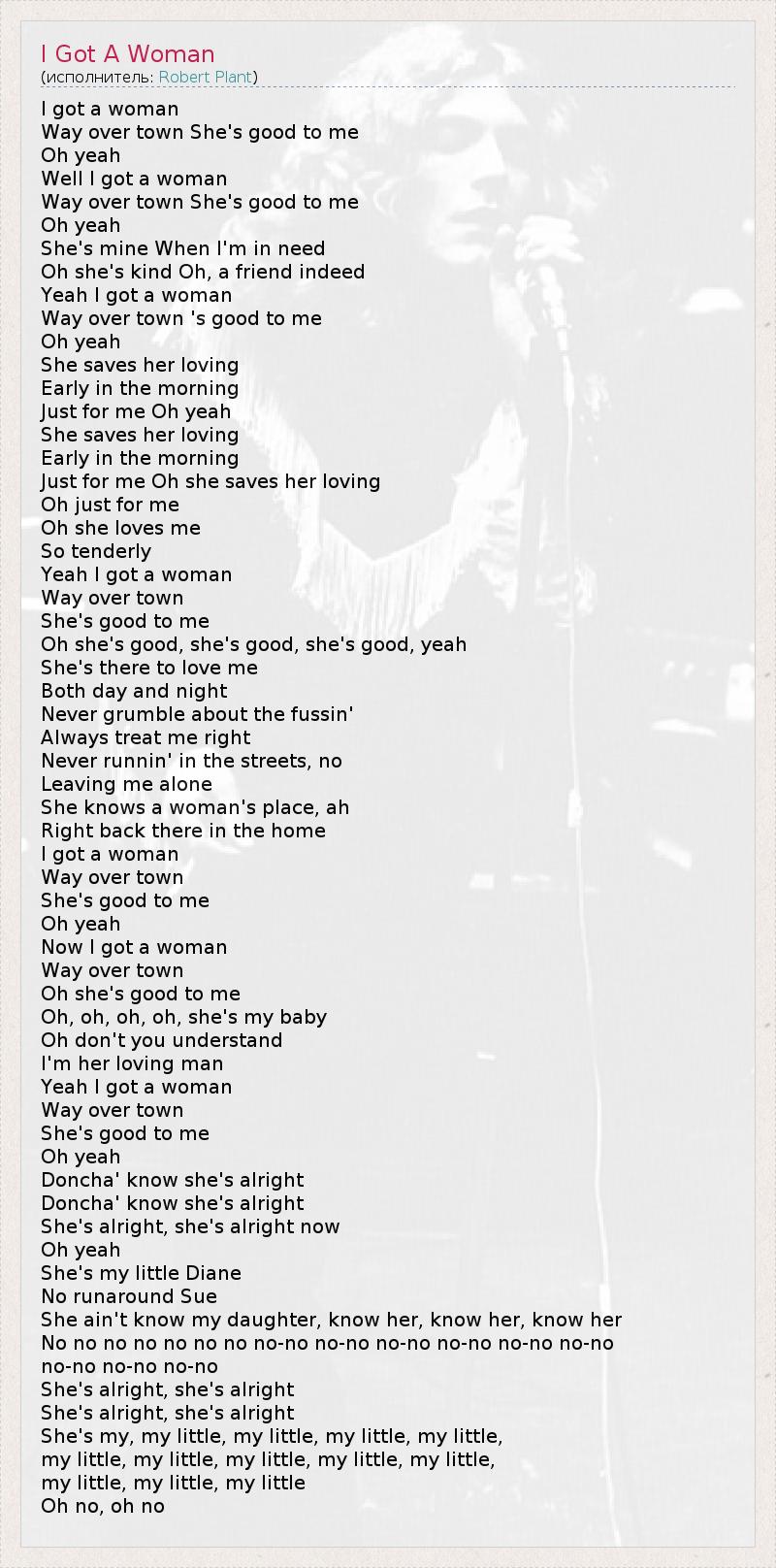 А как ты думаешь, о чем песня "I Got A Woman" ?
