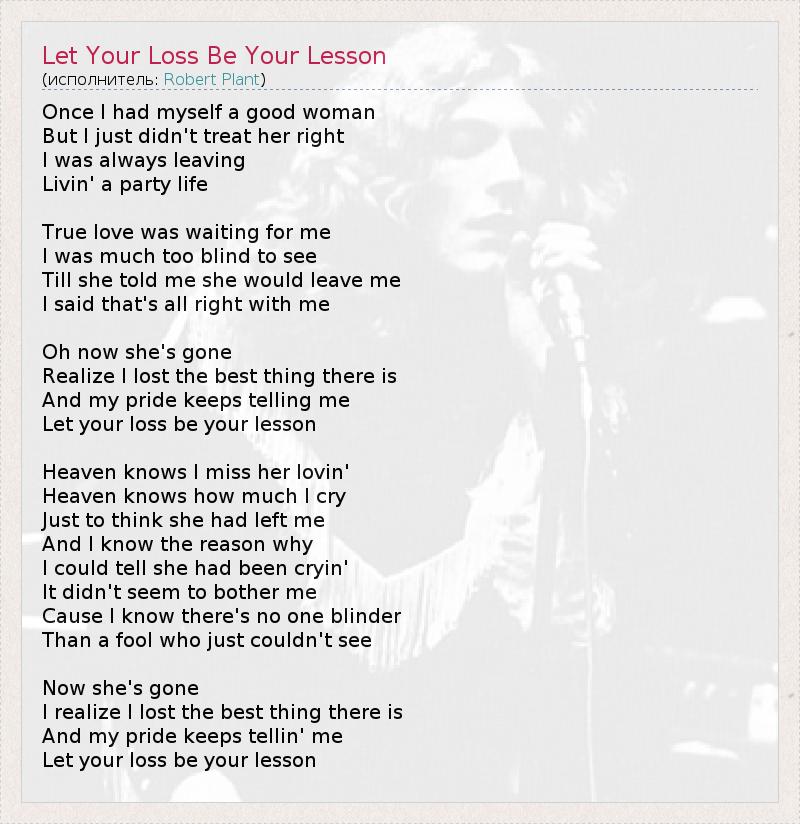 ГлавнаяИсполнителиRobert PlantLet Your Loss Be Your Lesson